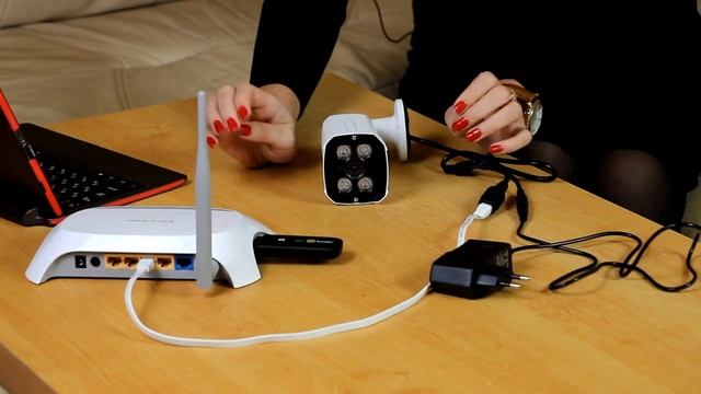IP-камера должна быть подключена к сети интернет. Для этого она подсоединяется сетевым кабелем к интернет‑роутеру. Настройка происходит автоматически. Также к камере подключается адаптер питания.
